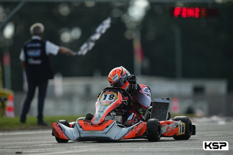 Nicolas Chevesson (JB17/Iame)prenait le meilleur envol à l’extinction des feux de la finale du Championnat de France Handikart. Il devançait Laurent Flamant (Kosmic/Rotax) et Mickael Vaché (Sodi/Rotax) sur la 1re boucle. Les écarts étaient faibles entre les 3 premiers. Vaché se hissait en 2e position tandis qu’Omar Megari (Sodi/Iame) le suivait devant Nicolas Lelu (GP/Rotax), Flamant ayant rétrogradé 7e. Chevesson menait avec plus de 8 dixièmes d’avance. Vianney Chan Tsin (Kosmic/Rotax) avait pris un excellent départ et pointait 5e, 1er H3 suivi par Denis Lefaure (Kosmic/Rotax). Vaché revenait rapidement sur le leader alors que Lelu était 3e à 7,5’’. Vaché prenait les commandes au détriment de Chevesson après la mi-course. Megari dépassait Lelu pour la 3e position tandis que Flamant revenait dans le top 5. Chan Tsin et Lefaure s’affrontaient dans le classement H3. A trois tours de l’arrivée, Megari profitait d’un incident en tête pour s’installer confortablement en 1re position. Megari remportant ainsi le championnat 3,5’’ devant Vaché. Flamant terminait 3e et Lelu 4e. Zoltan Bessenyey (Alpha Karting/Iame) finissait dans le top 5 et 1er H3 devant Fabrice Dubois (Sodi/Rotax), Chan Tsin et Lefaure ne ralliant pas l’arrivée.