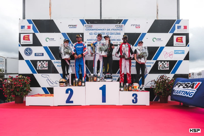 Valente s’arrachait parfaitement de sa position sur la grille et engrangeait déjà 1/2 sec d’avance au 1er passage alors que Loubère avait dépassé Tanic. Hugo Choisnet (Birel ART/TM) pointait 5e devant Nathan Hédouin (Birel ART/Vortex). Bon début de course de Gabin Leuillet (Birel ART/TM) 8e avec 5 places gagnées. Besancenez collait à la roue du leader avec Loubère et Tanic dans son sillage. Besancenez prenait les commandes des mains de Valente au 5e passage et s’affirmait aussitôt avec un meilleur temps. Tim Locati (Sodi/TM) renonçait. Au 8e des 25 tours, Besancenez possédait une seconde d’avance sur Valente et Tanic reprenait la 3e position à Loubère. Pointé 12e, Yohan Soguel (Oberon/TM) avait regagné 12 places et Romain Couedic 13 au 13e rang. Leuillet passait devant Hédouin en 6e position. Besancenez alignait les meilleurs tours et augmentait son avance à 2,5’’ à la mi-course. Tanic suivait Valente de près, Loubère avait laissé filer quelques longueurs. Besancenez poursuivait sur un rythme très soutenu jusqu’à l’arrivée et remportait le titre de Champion de France 4,5’’ devant Valente. Tanic terminait 3e à 3 dixièmes. Leuillet avait dépassé Loubère au 23e passage pour prendre la 4e position avec 9 places gagnées. Nicolas Masle (Birel ART/TM) réalisait la plus forte remontée de la course, 23 places, en 13e position malgré un spoiler décroché. 12 pilotes n'avaient pas rallié l'arrivée.